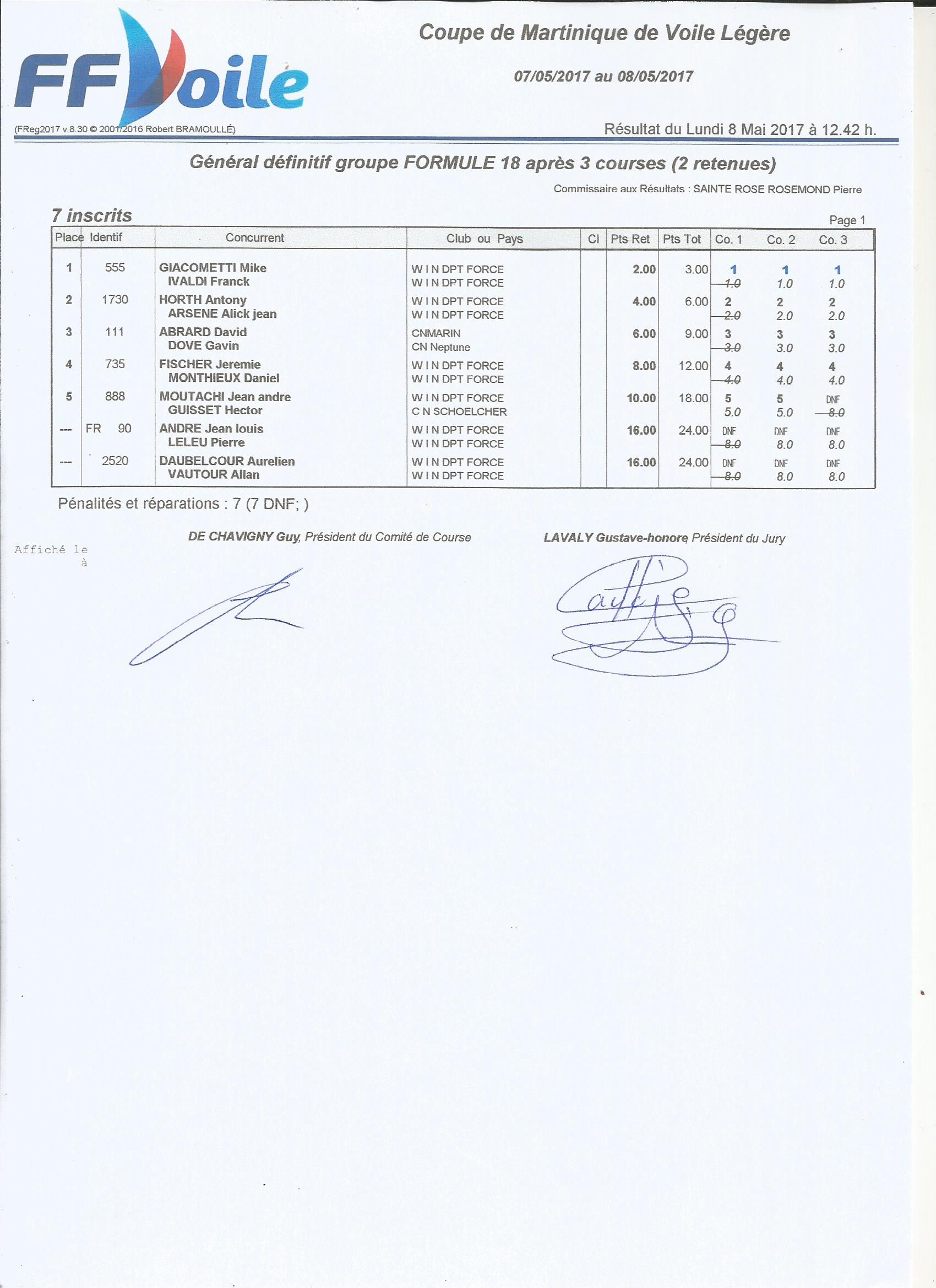Résultats provisoires du championnat de Martinique de voile légère: Cliquez ici